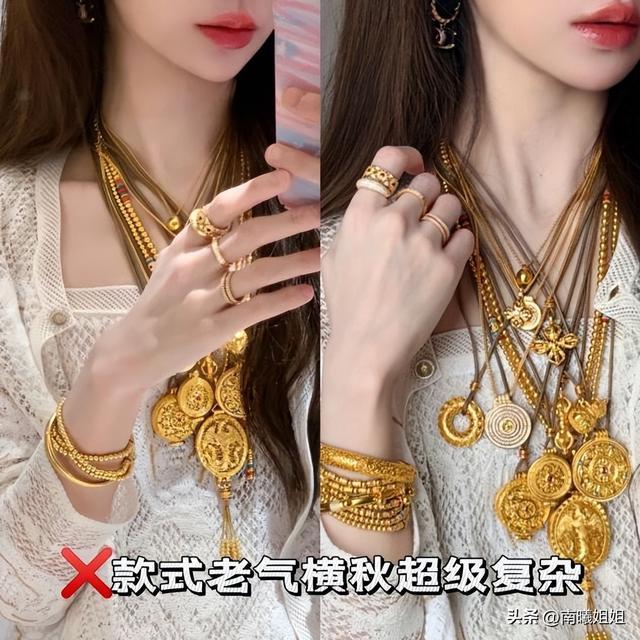 审美是流动的,但很多黄金首饰的设计还停留在过去。那些雕花复杂、镂空过多、或者镶嵌着廉价红绿宝石的黄金款式,往往带着浓重的年代感。这种设计不仅容易勾挂衣物,更会在视觉上显得杂乱无章。同样,珍珠首饰如果设计得过于老气,比如那种毫无设计感的一串大珠子,或者搭配了劣质的玉石,都会让你瞬间与“时尚”二字绝缘,显得像个过时的“大妈”。