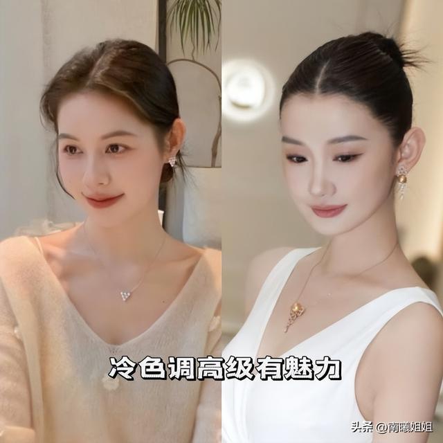 亚洲女性的肤色普遍偏黄,高饱和度的暖色调黄金虽然贵气,但容易与肤色融为一体,显得脏兮兮。因此,在挑选黄金时,建议优先选择带有“冷调”光泽的材质,这些材质经过特殊工艺处理,光泽更加内敛柔和,自带一种高级的滤镜感。对于珍珠,一定要选择皮光细腻、光泽锐利的珍珠。冷白色的澳白珍珠或带有银蓝光晕的珍珠,能有效中和皮肤的黄气,起到“反光板”的作用,让你瞬间白两个度。