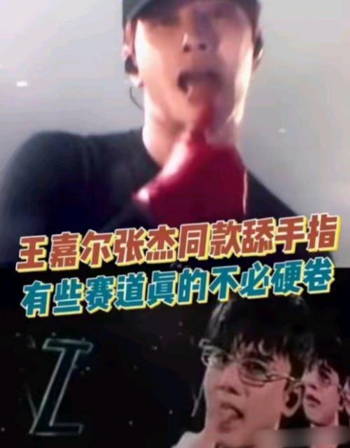 王嘉尔率先发明的这个,张杰非要模仿,效果大相径庭。